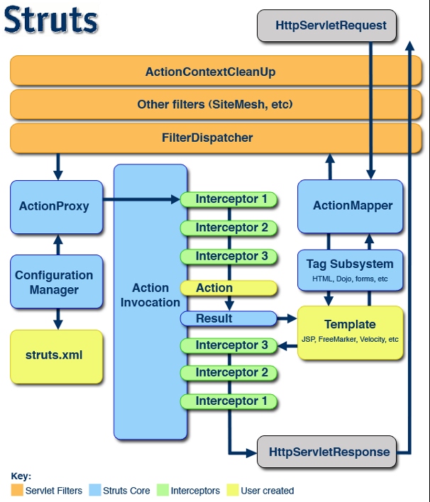 注: 本博文主要翻译自 Struts 官方文档,附上链接 https://cwiki.apache.org/confluence/display/WW/Big+Picture
