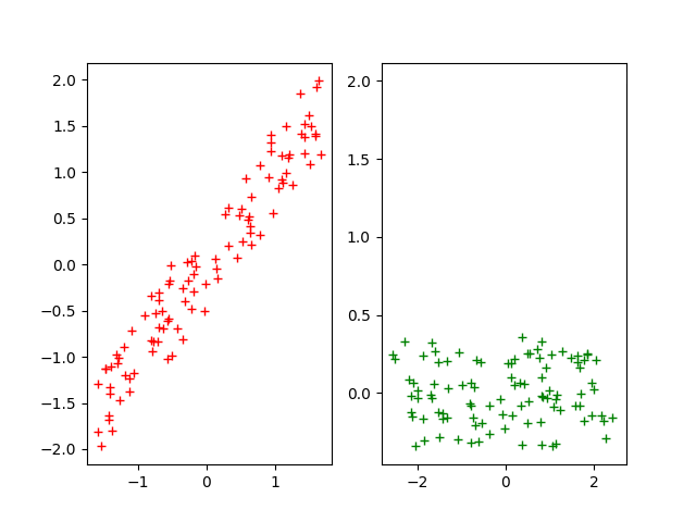 • 去噪。当数据受到噪声影响时,最小的特征值所对应的特征向量往往与噪声有关,将他们舍弃,在一定程度上能起到去噪的效果。