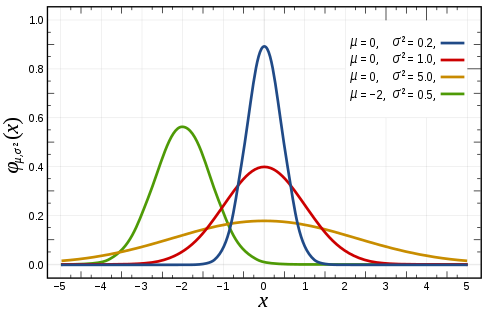 正态分布的数学期望值 $\mu$ 等于位置参数,决定了分布的位置;其方差 $\sigma^{2}$ 的开平方或标准差 $\sigma$ 等于尺度参数,决定了分布的幅度。