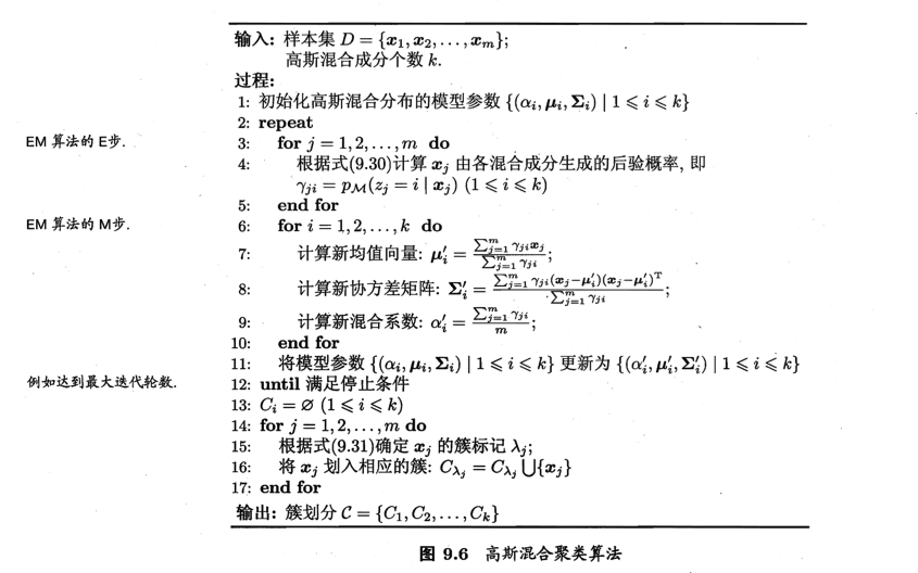 E-step(Expectation),计算期望,对应于GMM也就是,根据当前的$\pi_k、\mu_k、\sigma_k$计算后验概率:M-step: